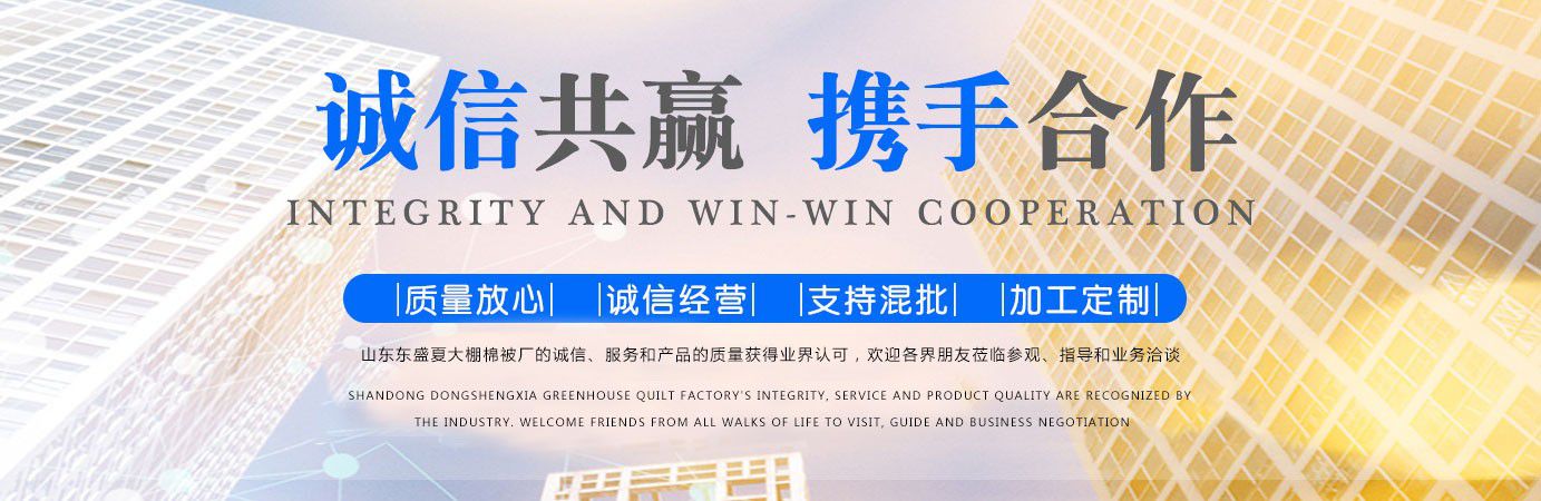 山東東盛夏大棚棉被廠是專門從事大棚棉被,大棚保溫棉被,蔬菜大棚棉被,溫室大棚棉被,防水大棚棉被,大棚棉被廠家等產品生產的企業。公司擁有專業的設計、生產和銷售團隊,并運用先進的科學技術和現代化管理手段為廣大客戶提供優質的產品和服務?! 」局铝τ谔岣邷厥耶a品質量和農業保溫材料裝備水平,努力推進溫室產品技術進步和實現現代高效農業?! 」窘哒\為廣大用戶提供優質的產品和貼心的服務,您的需求就是我們的目標。 立足現在、展望未來在當今全球經濟一體化進程中充滿了機遇和挑戰。公司將不斷開拓、創新、完善自己。 “誠信、求實、開拓、創新”是我公司的企業精神?! 榱四芡ㄟ^科技的力量為客戶生產一個品質靠得住的大棚保溫被,我們以“聆聽客戶心聲、追求卓越品質”作為我們企業的質量方針;以“每天前進一步,真誠服務”作為我們企業的服務宗旨;以“打造優秀團隊,鑄就一流品質”作為我們企業的經營理念。我們通過堅守質量、服務與理念,成就讓視界更精彩的事業?! ≡谇把啬繕松?,我們堅持做到目光長遠、思想創新、行動堅定,建立企業精神文化,讓全體員工擁有共同的信仰和目標,并且為之奮斗拼搏。同時,我們內心坦誠,言出必行,信守承諾,因為誠信是我們最重要的無形資產。...